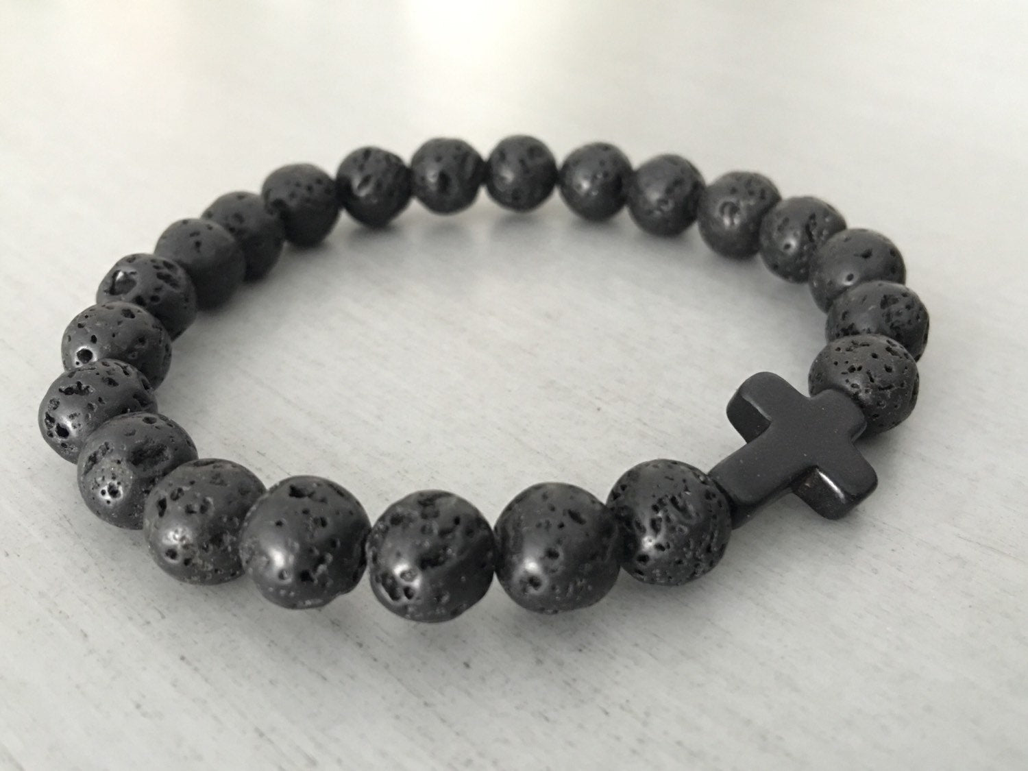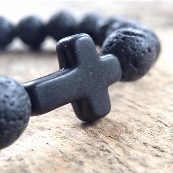 Healing Lava Stone Black Cross Bracelets