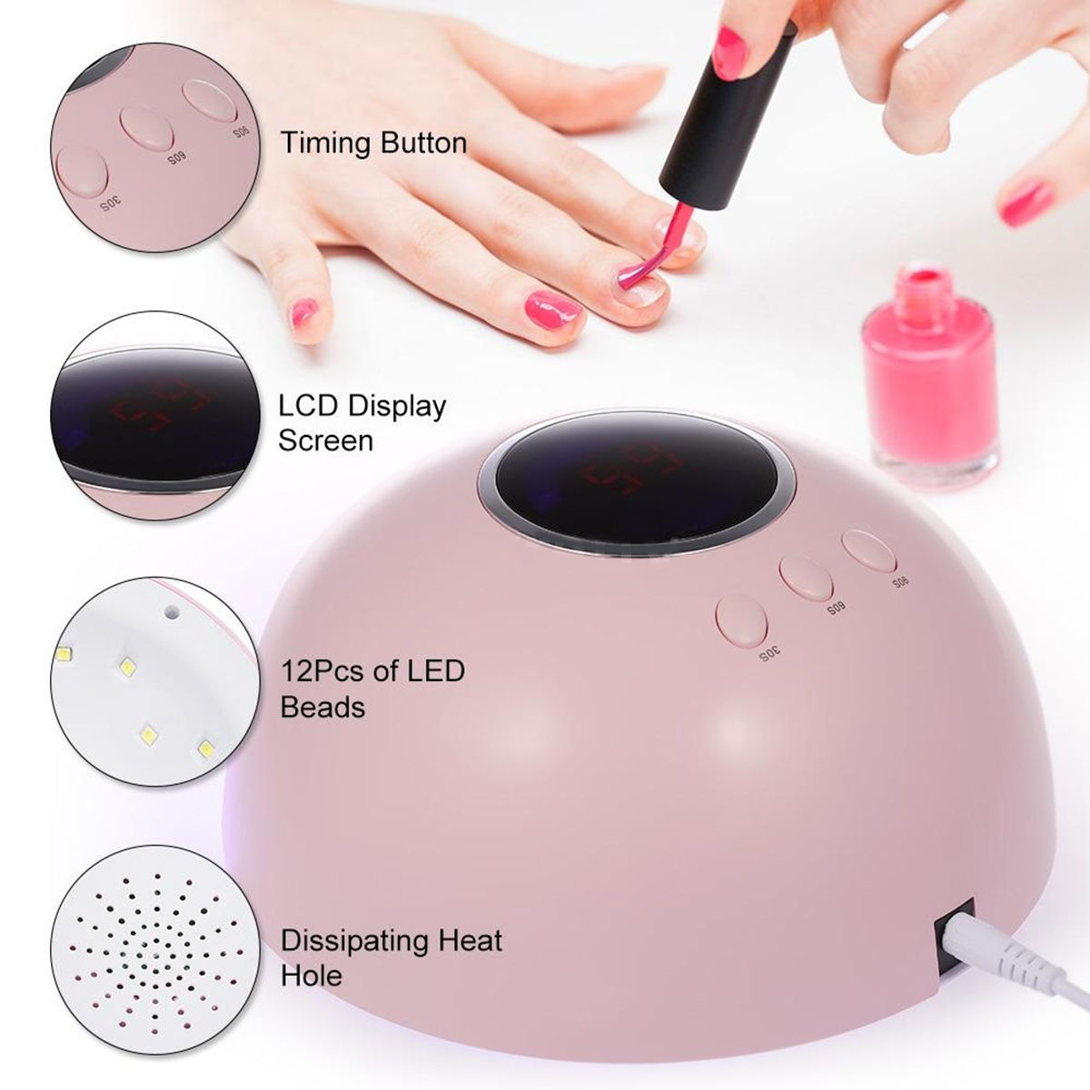 - 3. 12Pcs of LED light beads are built inside, can cure nail gel quickly without hurting or darkening your skin, providing your customers with a satisfying nail art experience.